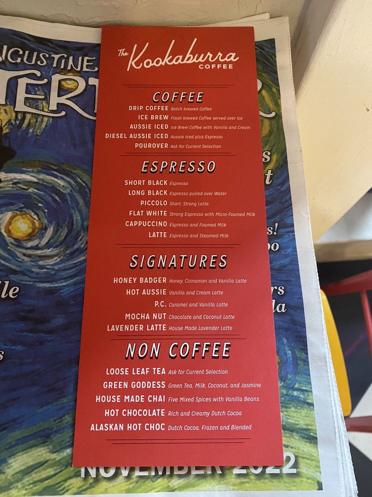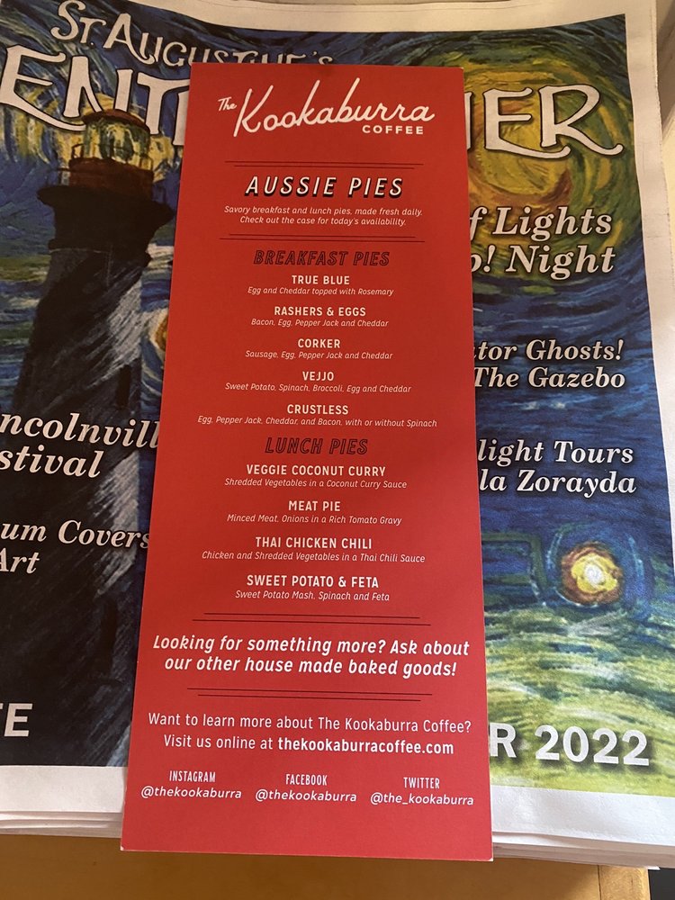 The Kookaburra, located in St. Augustine, FL, is a cozy coffee and tea spot that offers an Aussie-inspired menu. With a charming atmosphere and friendly service, this cafe has received glowing reviews from customers. The coffee, described as strong and rich, is a standout offering, along with delicious pastries and snacks. The peach cobbler muffin and pies are particularly recommended by patrons. While the indoor seating area may be lacking in ambiance, the outdoor seating provides a pleasant spot to enjoy your beverage. The staff are praised for their patience, friendliness, and efficient service. Overall, The Kookaburra is a must-visit destination for quality coffee and treats in St. Augustine.